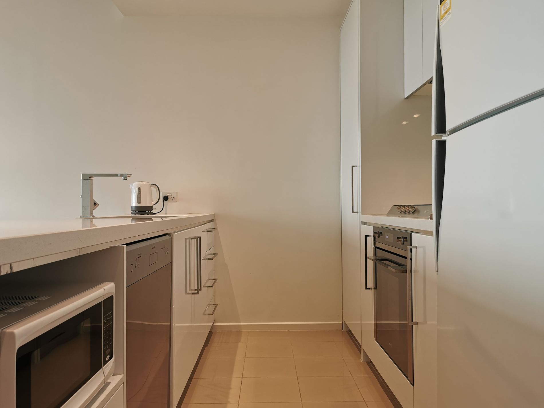 A large fridge, an integrated dishwasher, split-airconditioning in the living and both bedrooms, and a washing machine & dryer are included with the apartment apart from all the quality furniture displayed in the photos.