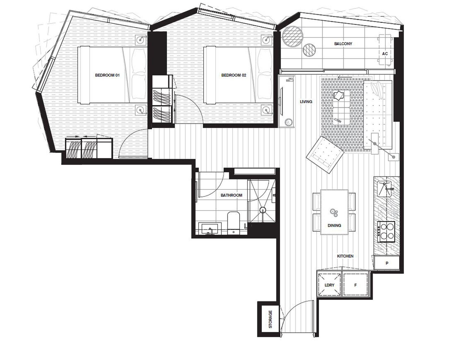 Apartment 2109 features a corner unit taking advantage of the light and view across the windows, an open plan living/dining area giving you flexibility to organise your new home, air-conditioning to living room and master bedroom.