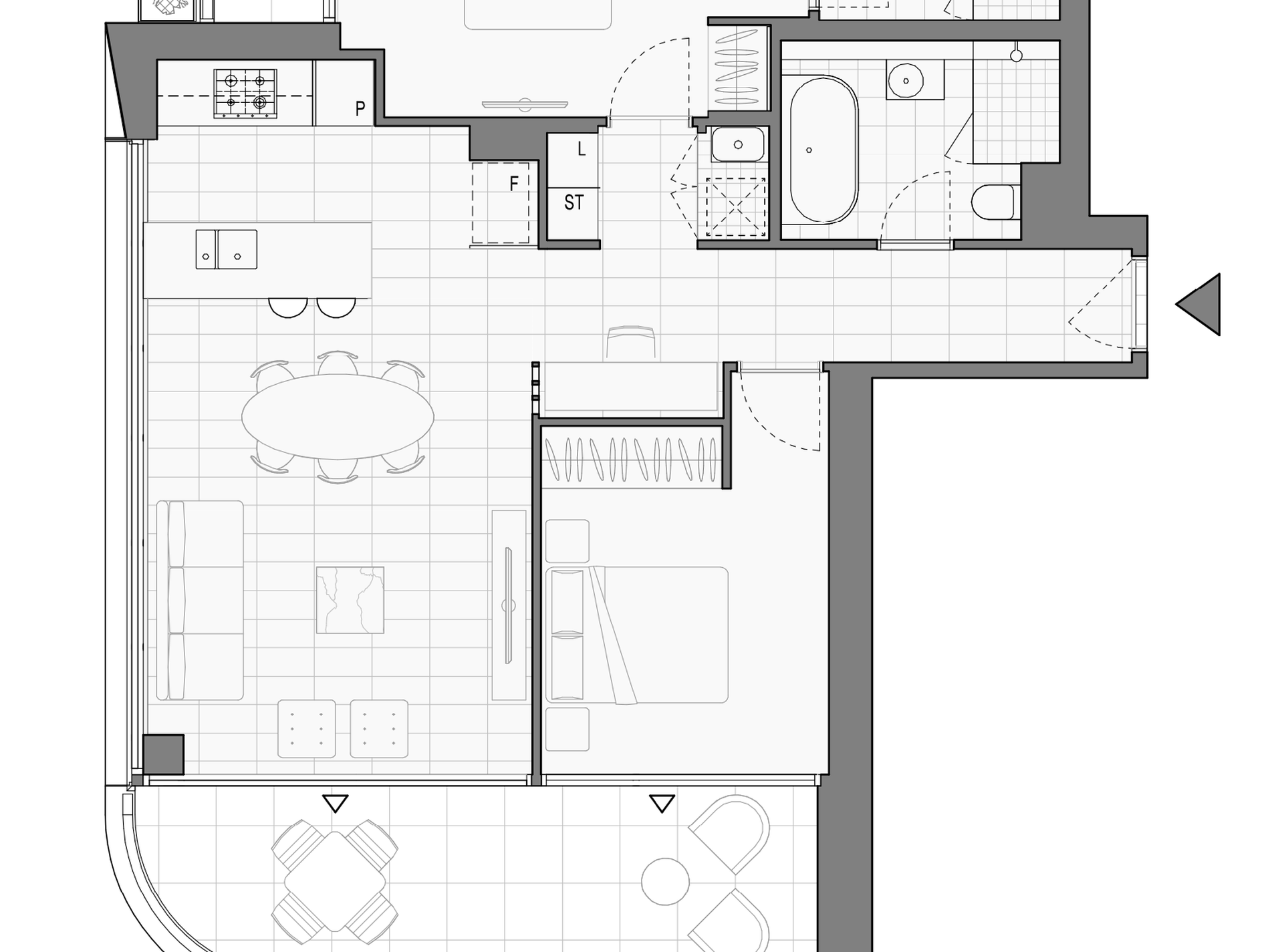 + Spacious living and dining area seamlessly flowing onto a balcony