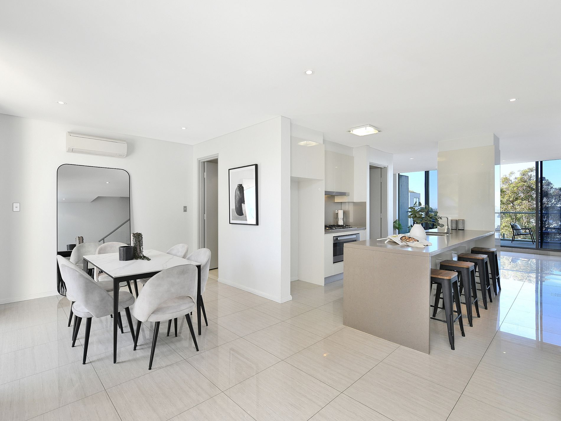 * Airy open-plan living and dining area seamlessly integrated with the kitchen