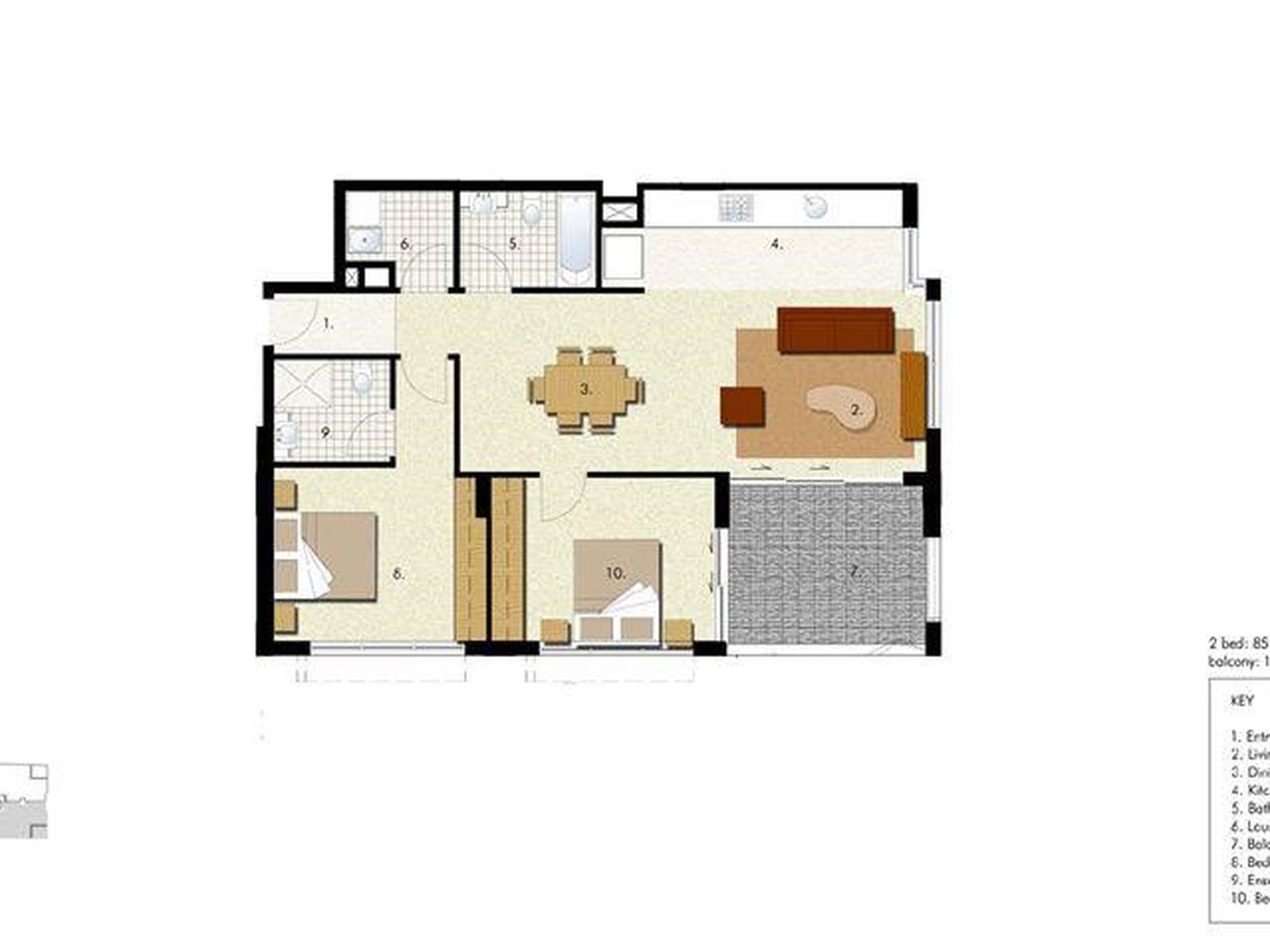 - 2 large bedrooms, main with ensuite, and 2nd bedroom with balcony access.