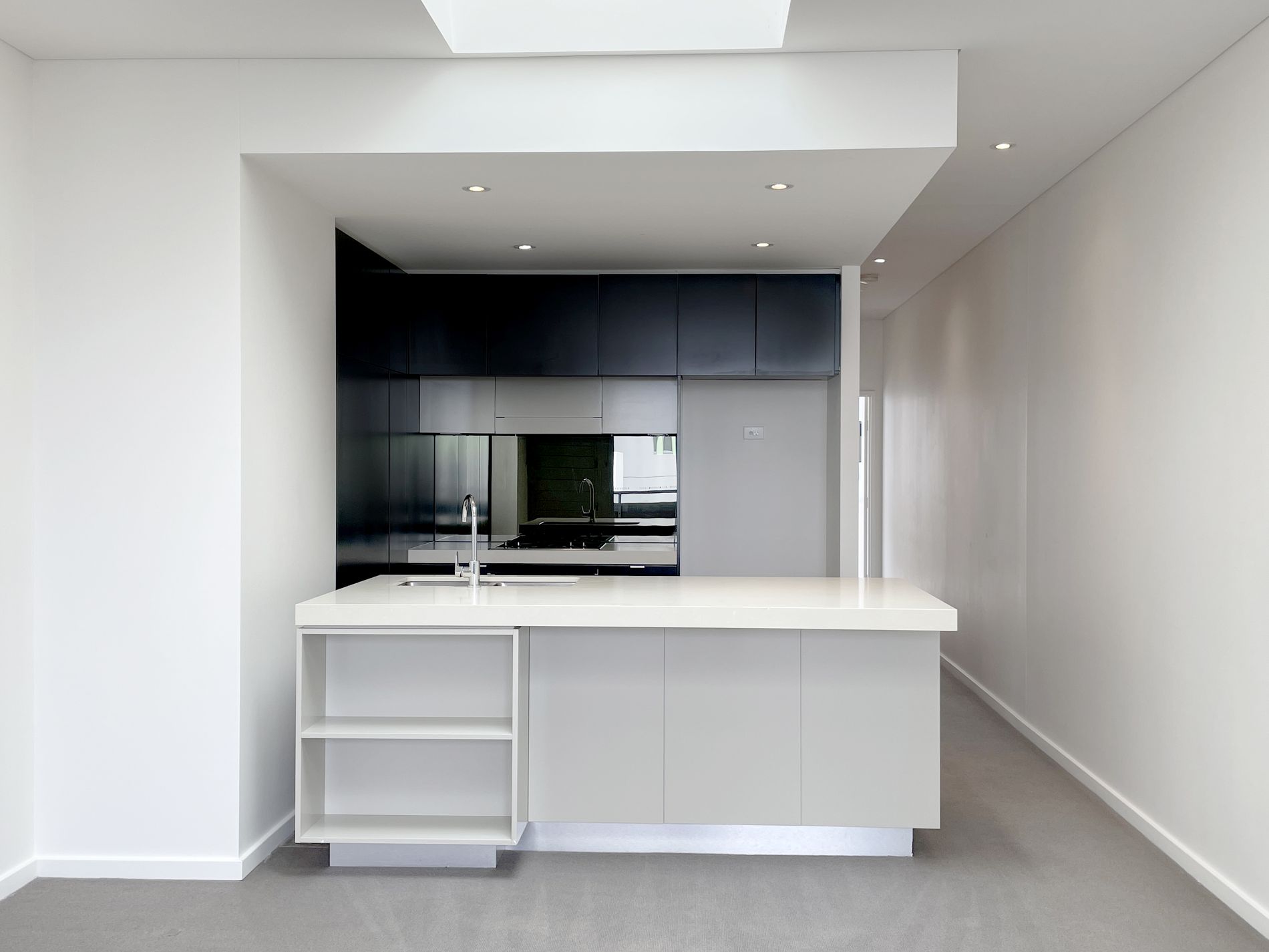 *Modern kitchen with stone bench-top and island preparation bench